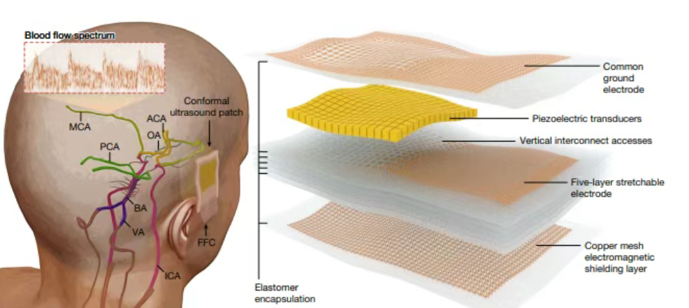 这种柔软而有弹性的贴片可以舒适地戴在太阳穴上,提供脑血流的三维数据,通过这种创新的设备,研究人员和医生将能够更深入地了解脑血流动态,监测治疗效果,并为患者提供个性化的治疗方案。